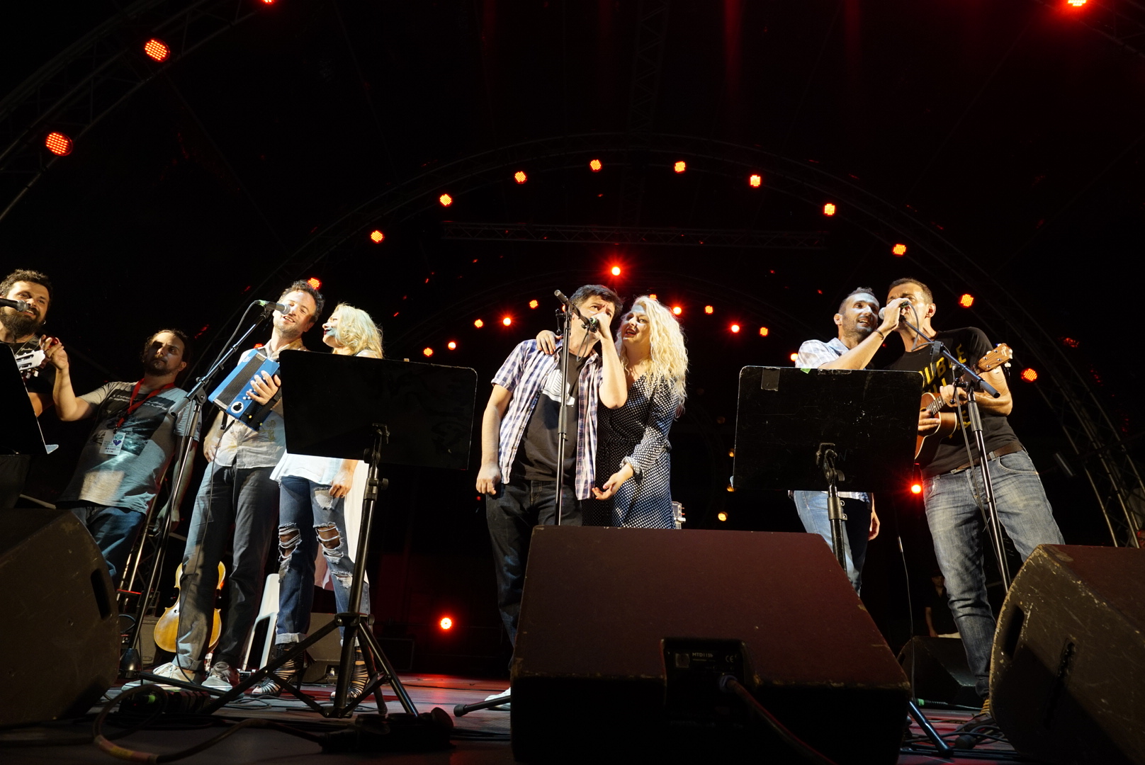 Κατά τις 9 και κάτι, οι καλλιτέχνες που αποτελούν την πρωτοβουλία αλληλεγγύης «ΑΓΑΠΗ ΡΕ+» ανέβηκαν στη σκηνή, όπου τραγούδησαν για περίπου τρεις ώρες.