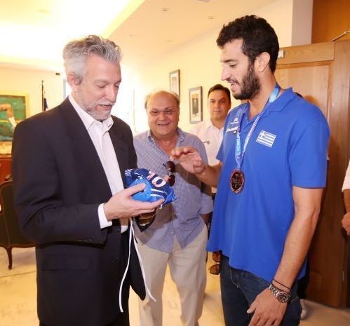 Την Εθνική Ομάδα Πόλο, η οποία πριν από λίγες μέρες κατέκτησε το χάλκινο μετάλλιο στο Παγκόσμιο Πρωτάθλημα του Καζάν, υποδέχτηκε το μεσημέρι της Τρίτης στο γραφείο του ο Υφυπουργός Αθλητισμού, Σταύρος Κοντονής. Οι έλληνες παίκτες στη συζήτηση που είχαν με τον κ. Κοντονή του εξέφρασαν τα παράπονα τους και τα προβλήματα που αντιμετωπίζουν, καθώς η επιχορήγηση του κράτους στον υγρό στίβο είναι ελάχιστη, ενώ έγινε λόγος ακόμα και για... κρύες πισίνες.