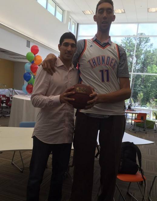 Έτσι λοιπόν και έγινε με τον σέντερ των Οκλαχόμα Σίτι Θάντερ, Ενές Καντέρ, ο οποίος πόζαρε δίπλα στον ψηλότερο εν ζωή άνθρωπο, τον Σουλτάν Κοσέν, ο οποίος βλέπει τον κόσμο από τα… στα 2.51μ.