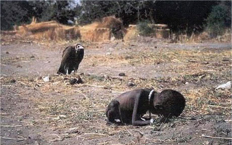 Η φωτογραφία του νοτιοαφρικανού φωτογράφου Κέβιν Κάρτερ, με το αποστεωμένο κοριτσάκι από το Νότιο Σουδάν και το όρνεο που έστεκε παραπέρα περιμένοντας τον θάνατό του, έφερε αναμφισβήτητα περισσότερες αλλαγές, θετικές αλλά και αρνητικές. Η συγκλονιστική εικόνα είχε ως αποτέλεσμα να ενισχυθεί η αποστολή βοήθειας σε αρκετά χωριά της περιοχής. Ο ίδιος ο φωτογράφος ωστόσο δεν μπόρεσε να σβήσει ποτέ από τη μνήμη του τη δυστυχία που γνώρισε στο Σουδάν. Τρεις μήνες μετά αναγνώριση της δουλειάς του (του απονεμήθηκε βραβείο Pulitzer) έβαλε τέλος στη ζωή του.