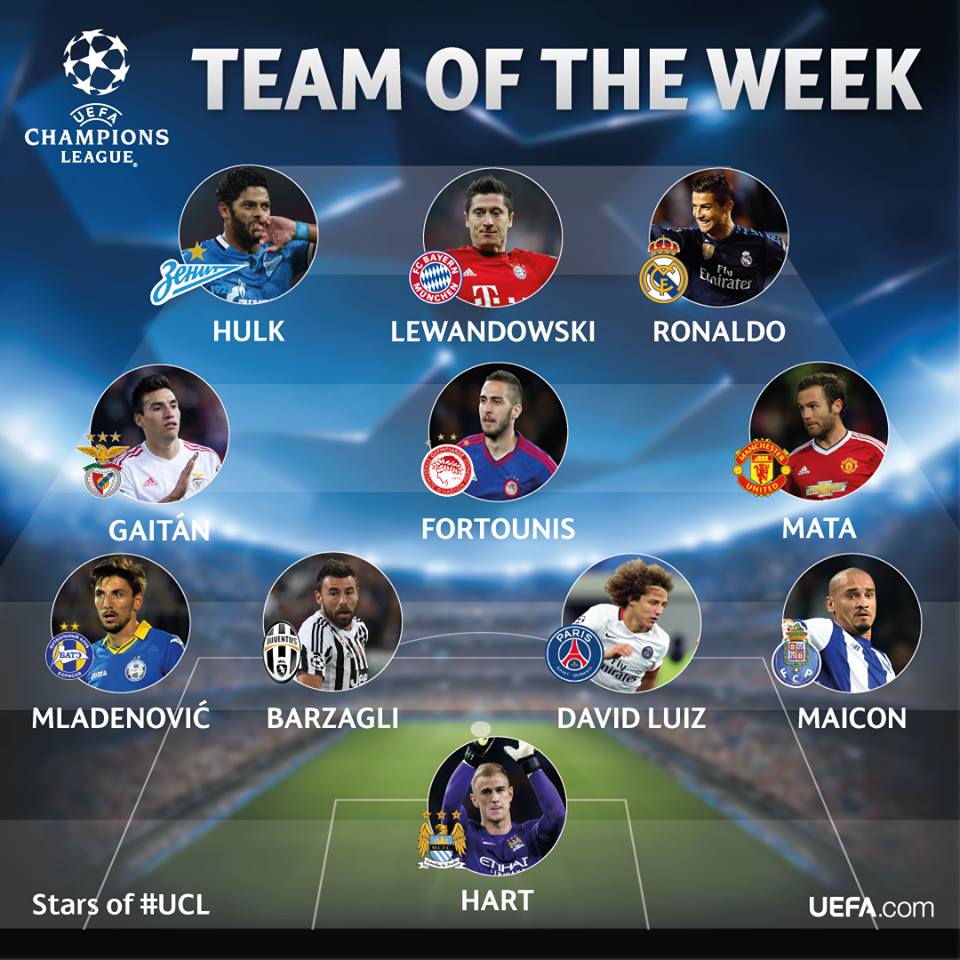 Από την κορυφαία ομάδα δεν μπορούσε να απουσιάζει φυσικά ο Κριστιάνο Ρονάλντο, οποίος έφτασε έσπασε το «φράγμα» των 500 γκολ στην καριέρα του, ενώ και ο Τζο Χαρτ που με τις αποκρούσεις του οδήγησε τη Μάντσεστερ Σίτι στην πρώτη της νίκη. Αναλυτικά η κορυφαία ενδεκάδα:
