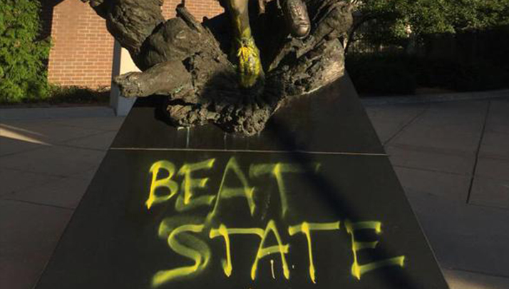 Με κίτρινο σπρέι έβαψαν άγνωστοι το άγαλμα του Μάτζικ Τζόνσον που βρίσκεται έξω από το γήπεδο μπάσκετ του κολεγίου του Μίσιγκαν Στέιτ, με το οποίο κατέκτησε το κολλεγιακό πρωτάθλημα το 1979 κόντρα στο Ιντιάνα Στέιτ του Λάρι Μπερντ. «Νικήστε το Στέιτ» έγραψαν πάνω στο άγαλμα του «ζωντανού θρύλου» του ΝΒΑ και των Λος Άντζελες Λέικερς.