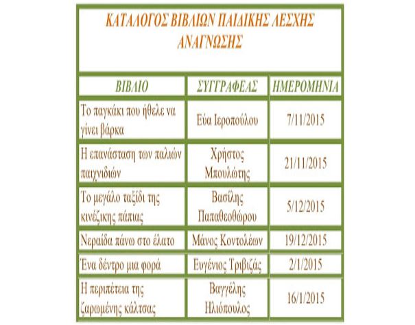 Αναλυτικά το πρόγραμμα της Παιδικής Λέσχης Ανάγνωσης: