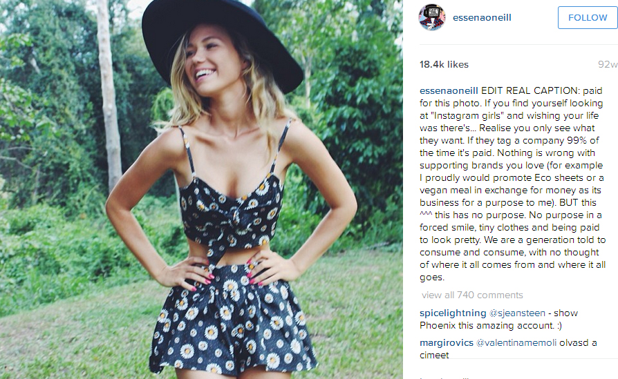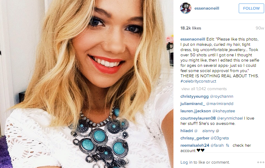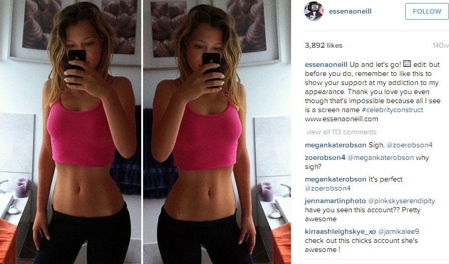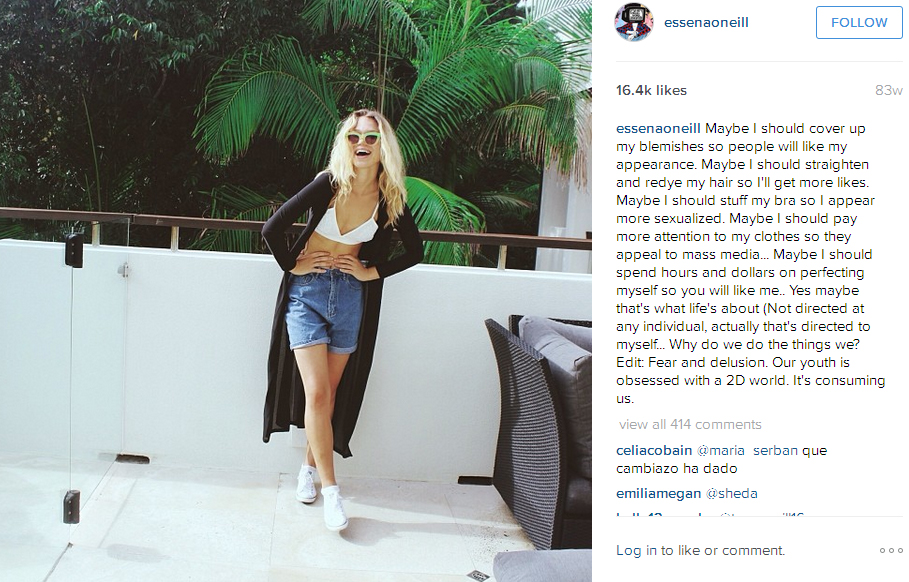 Η Εσένα Ο’ Νιλ ανέφερε πόσο «σκηνοθετημένο, ψεύτικο και πιεστικό είναι το να δείχνεις στον κόσμο «πόσο τέλεια είναι η ζωή σου/το σώμα σου/ ο εαυτός σου»».