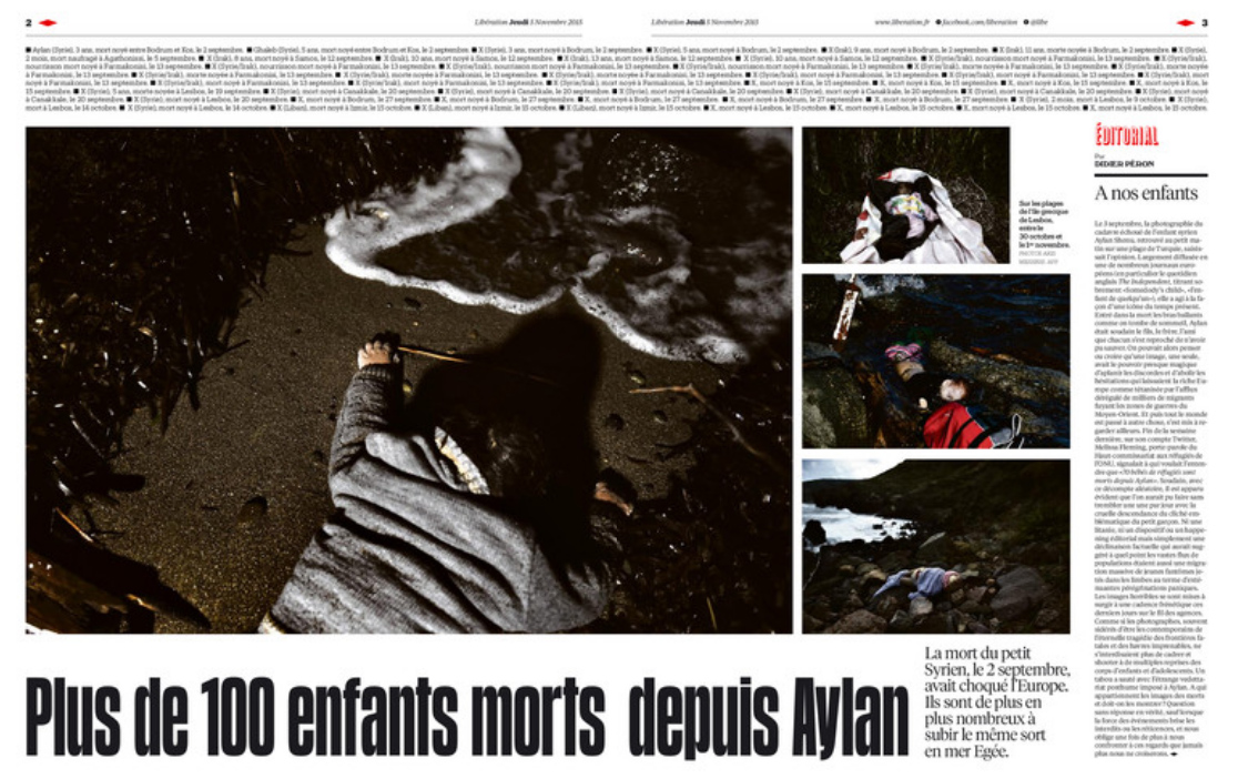 Και από τότε οι εικόνες έρχονται με φρενήρη ρυθμό, ενώ ένα ακόμα θέμα έχει προκύψει: πρέπει να απαγορεύονται αυτές οι εικόνες με τα νεκρά παιδιά; Στην πραγματικότητα, μια ερώτηση χωρίς απάντηση, αναφέρει η Liberation καταγράφοντας τον «εθισμό» στις εικόνες νεκρών παιδιών που ακολούθησε το αρχικό σοκ με τον νεκρό Αϊλάν-σύμβολο της προσφυγικής κρίσης.