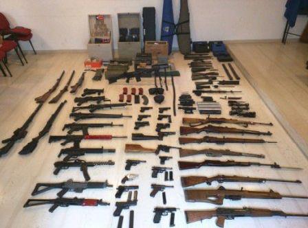 Σε έρευνες σε σπίτια και χώρους που χρησιμοποιούσαν οι συλληφθέντες, βρέθηκαν και κατασχέθηκαν συνολικά 18 πολεμικά τυφέκια διαφόρων τύπων (Kalashnikov, αυτόματο M16, αυτόματο Η&Κ, υποπολυβόλο PPS κ.ά.), οκτώ πιστόλια και περίστροφο, οκτώ κιλά αμμωνιοδυναμίτιδα, δύο κιλά εκρηκτικής ύλης ΤΝΤ, 24 χειροβομβίδες, 207 γεμιστήρες (87 πυροβόλων όπλων και 120 πολεμικών τυφεκίων), 18.397 πλήρη φυσίγγια πυροβόλων όπλων και πολεμικών τυφεκίων, 2.308 πλήρη φυσίγγια κυνηγετικού όπλου, δύο ξίφη, 34 κάνες όπλων, 97 εξαρτήματα-τμήματα όπλων, τέσσερις πυροδοτικοί μηχανισμοί εκρηκτικής ύλης, εννέα κοινοί πυροκροτητές, 11 σιγαστήρες όπλων, έξι διόπτρες πολεμικών τυφεκίων, τέσσερα μέτρα βραδύκαυστη θρυαλλίδα, πλήθος ειδών καθαρισμού πυροβόλων όπλων, ανταλλακτικά πυροβόλων και κυνηγετικών όπλων, θήκες γεμιστήρων, κουκούλα τύπου full face, δύο λίθινα ειδώλια κυκλαδικού τύπου, χάλκινο ειδώλιο ανδρός άγνωστης περιόδου και χάλκινο στεφάνι άγνωστης περιόδου.