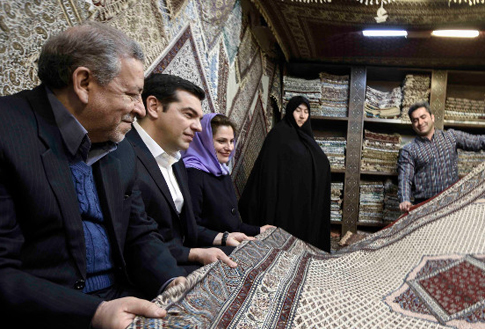 Ντυμένη σύμφωνα με τις θρησκευτικές παραδόσεις του Ιράν εμφανίστηκε στο πλευρό του πρωθυπουργού Αλέξη Τσίπρα η σύντροφός του, Μπέτυ Μπαζιάνα, κατά την εκεί επίσημη επίσκεψη του κυβερνητικού κλιμακίου.