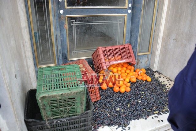 Στη συνέχεια έριξαν στην είσοδο του κτιρίου ελιές και πορτοκάλια. Φεύγοντας, οι αγρότες πήραν μαζί τους την πινακίδα των γραφείων, δηλώνοντας αμετακίνητοι στις θέσεις τους και πως θα κλιμακώσουν τον αγώνα τους. «Δεν μπορεί να ζητάει διάλογο ο ΣΥΡΙΖΑ με κλειστές πόρτες και δεν δεχόμαστε να μας χαρακτηρίζει ακροδεξιά στοιχεία. Είμαστε όλοι αγρότες που διεκδικούμε το δίκιο μας» είπαν οι εκπρόσωποί τους.