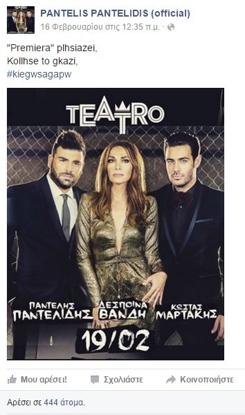 Να σημειωθεί ότι ο Π.Παντελίδης θα εμφανιζόταν σε νυχτερινό κέντρο, μαζί με τη Δέσποινα Βανδή και τον Κώστα Μαρτάκη. Η πρεμιέρα ήταν προγραμματισμένη για την Παρασκευή, 19 Φεβρουαρίου.