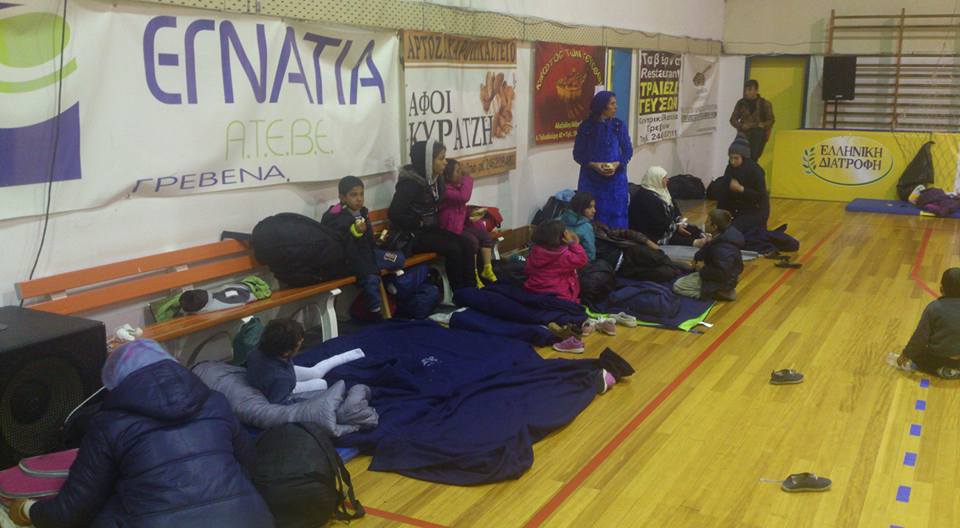 Την ίδια ώρα, στο κλειστό Γυμναστήριο των Γρεβενών έφτασαν αιφνιδιαστικά, αργά χθες το βράδυ, 131 πρόσφυγες προερχόμενοι από την περιοχή της Καλαμπάκας. Αμέσως κινητοποιήθηκαν οι τοπικές αρχές της πόλης, ο δήμος σε συνεργασία με την περιφερειακή αρχή, προκειμένου να δημιουργηθούν συνθήκες για την καλύτερη φιλοξενία τους (φωτογραφία: grevenamedia.gr).