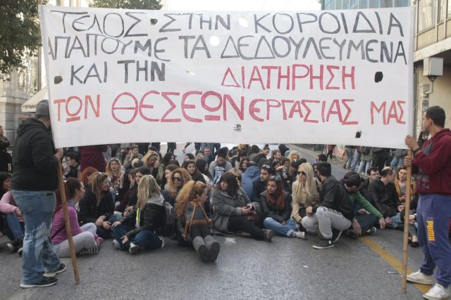 Συμβολική κατάληψη της εισόδου του υπ. Εσωτερικών από δημοτικούς υπαλλήλους