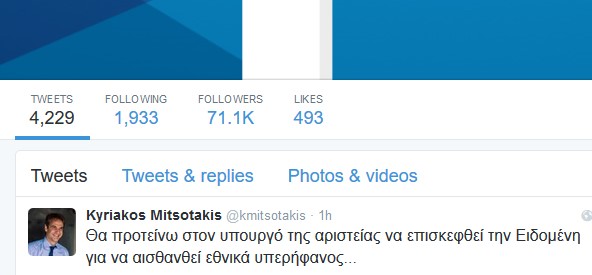 Απάντηση στις δηλώσεις Μπαλτά έδωσε, μέσω Twitter, ο πρόεδρος της ΝΔ, Κυριάκος Μητσοτάκης, ο οποίος επισκέφθηκε την Ειδομένη.