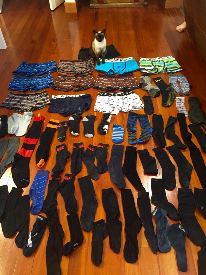 Να απολογηθεί αναγκάστηκε η ιδιοκτήτρια μιας γάτας στη Νέα Ζηλανδία, καθώς τους τελευταίους μήνες η Μπριτζίτ έχει επιδείξει «εγκληματική» συμπεριφορά, κλέβοντας τις κάλτσες και τα εσώρουχα των ανδρών της γειτονιάς.