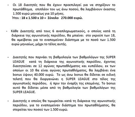 Παράλληλα, συμφωνήθηκε ότι οι ομάδες που υποβιβάζονται από τη Σούπερ Λιγκ στη Football League να «χρηματοδοτούνται» με 200.000 ευρώ για έναν χρόνο από τη μεγάλη Λίγκα, εφόσον αν πληρούν κάποιες συγκεκριμένες προϋποθέσεις.