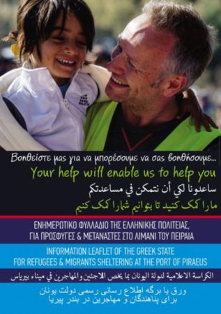 Το υπουργείο Ναυτιλίας έχει ετοιμάσει δικό του φυλλάδιο, γραμμένο σε τέσσερις γλώσσες (Ελληνικά, αγγλικά, αραβικά και φαρσί) το οποίο θα αρχίσει να διανέμεται από τη Δευτέρα στους πρόσφυγες στο λιμάνι του Πειραιά.