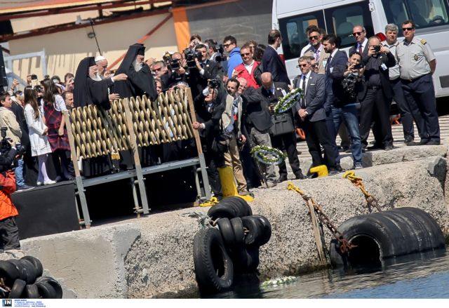 Κατευθύνθηκαν στην ειδική εξέδρα που είχε στηθεί για να ρίξουν λίγα λουλούδια στη θάλασσα στη μνήμη των ανθρώπων που έχασαν τη ζωή τους στα νερά του Αιγαίου.