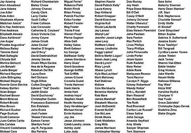 Το τηλεοπτικό δίκτυο Showtime αποκάλυψε ολόκληρο το καστ της νέας σειράς Twin Peaks. Οσκηνοθέτης Ντέιβιντ Λιντς και ο μυθιστοριογράφος Μαρκ Φροστ,έλυσαν ένα κομμάτι του μυστηρίου… δίνοντας στη δημοσιότητα την λίστα με τα 217 μέλη της πολυαναμενόμενης συνέχειας.