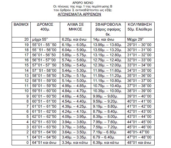 Νέους πίνακες για τα όρια των πρακτικών δοκιμασιών και τους βαθμούς που αντιστοιχούν σε αυτές, για τα Τμήματα Φυσικής Αγωγής και Αθλητισμού, ανακοίνωσε το υπουργείο Παιδείας.