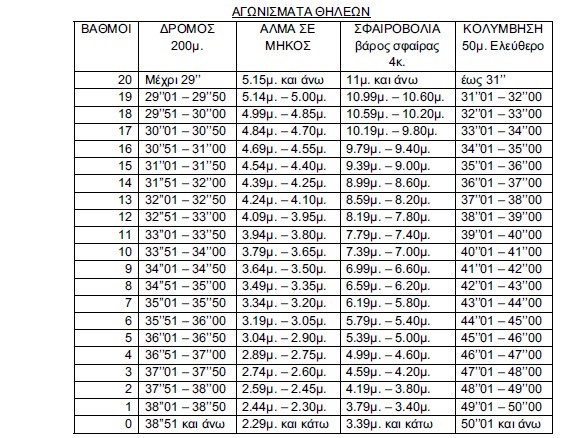 Νέοι πίνακες για τα όρια πρακτικών δοκιμασιών στα ΤΕΦΑΑ