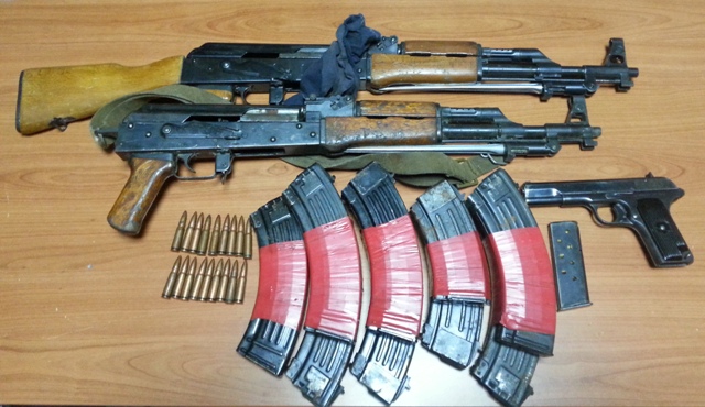 Στο σπίτι του 43χρονου και σε τροχόσπιτο που χρησιμοποιούσε με τον 70χρονο πατέρα του στο Καρβουνάρι Θεσπρωτίας, βρέθηκαν δύο πολεμικά τυφέκια Καλάσνικοφ με εννέα γεμιστήρες και 151 φυσίγγια των 7,62 mm, πιστόλι Τοκάρεφ με γεμιστήρα και οκτώ φυσίγγια των 7,62 mm, καθώς και 13 φυσίγγια 38 Special, τρία φυσίγγια SW 38 και 24 φυσίγγια κρότου.