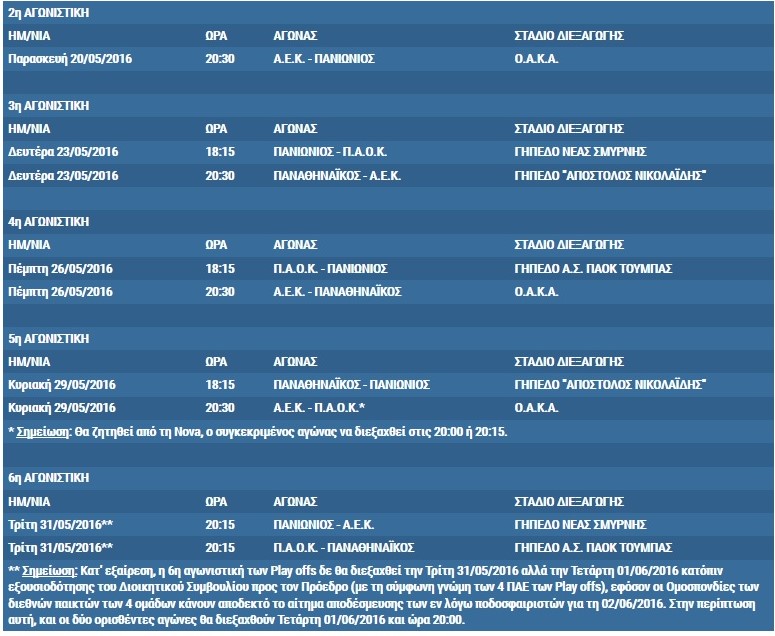 Λίγη ώρα αργότερα, η Σούπερ Λιγκ ανακοίνωσε το πρόγραμμα για τα πλέι οφ
