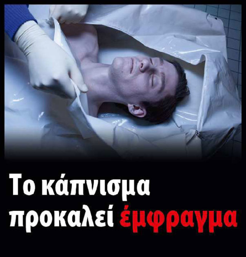 Η χώρα μας είναι από τις τελευταίες που εφαρμόζει τη σχετική κοινοτική οδηγία με τις σχετικές λεκτικές προειδοποιήσεις και τις εικόνες, όπως χαλασμένα δόντια, ανθρώπινα μέλη σε σήψη, παιδιά με μάσκες οξυγόνου.