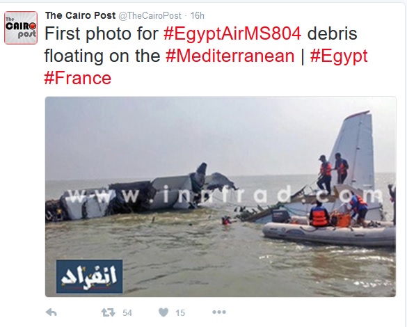 Μετά τις αναφορές και από την Αθήνα πως τα «συντρίμμια» που είχαν βρεθεί στη θάλασσα δεν ανήκουν στο αγνοούμενο Airbus, και ο αντιπρόεδρος της EgyptAir Αχμέντ Αντέλ αναγνώρισε τη νύχτα προς Παρασκευή ότι δεν έχουν εντοπιστεί ίχνη του αεροσκάφους. «Κάναμε λάθος» είπε, αποσύροντας την προηγούμενη θέση που είχε εκφράσει η εταιρεία περί εντοπισμού σωσιβίων και συντριμμιών.