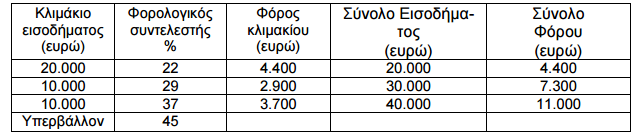 Η παρακράτηση φόρου στο εισόδημα από μισθούς – συντάξεις, διενεργείται βάσει αναγωγής του μηνιαίου εισοδήματος σε ετήσιο, σύμφωνα με την ακόλουθη κλίμακα: