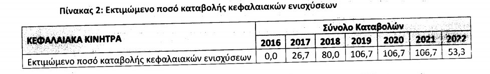 Από τον πίνακα που ακολουθεί, αλλά και την ανάλυση που προηγήθηκε προκύπτει ότι το σύνολο των εκτιμώμενων άμεσων εσόδων υπερκαλύπτει το σύνολο των εκτιμώμενων καταβολών των ενισχύσεων, τονίζεται στην έκθεση.