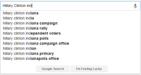 Παρομοίως, για την ημιτελή φράση «Hillary Clinton ind» η Google θα προτείνει κάθε λογής αναζητήσεις για τη δραστηριότητα της υποψήφιας για το χρίσμα των Δημοκρατικών στην Ιντιάνα ή στην Ινδία, δεν θα προτείνει όμως την αναζήτηση «Hillary Clinton indictment» (κατηγορητήριο) προφανώς σχετικά με την υπόθεση των e-mail όσο ήταν στο Στέιτ Ντιπάρτμεντ.