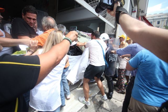 Στη συνέχεια, κατευθύνθηκαν προς το υπουργείο Εργασίας. Εκεί επιχείρησαν να μπουν στο κτίριο, αλλά απωθήθηκαν από τις αστυνομικές δυνάμεις.