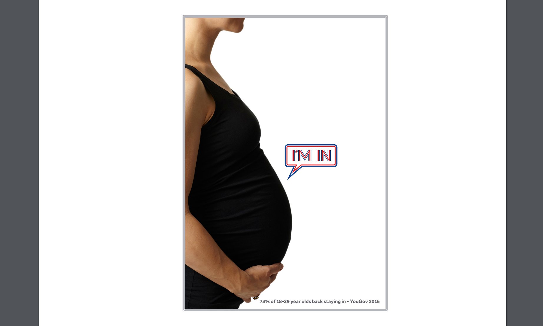 Άλλο πόστερ καλούσε τους βρετανούς να σκεφτούν «το μέλλον των παιδιών τους», δείχοντας μία έγκυο από την κοιλιά της οποίας «ακούγεται» το «είμαι μέσα».