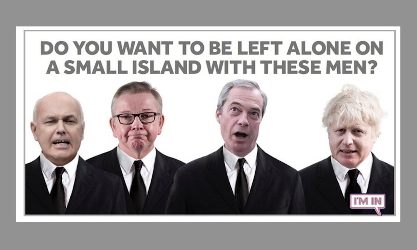 Ένα από αυτά είναι πόστερ που έδειχνε τα τέσσερα μεγάλα ονόματα του Brexit και έθετε το αφοπλιστικό ερώτημα «εάν θα θέλατε να μείνετε μόνοι σε ένα μικρό νησί με αυτούς εδώ».