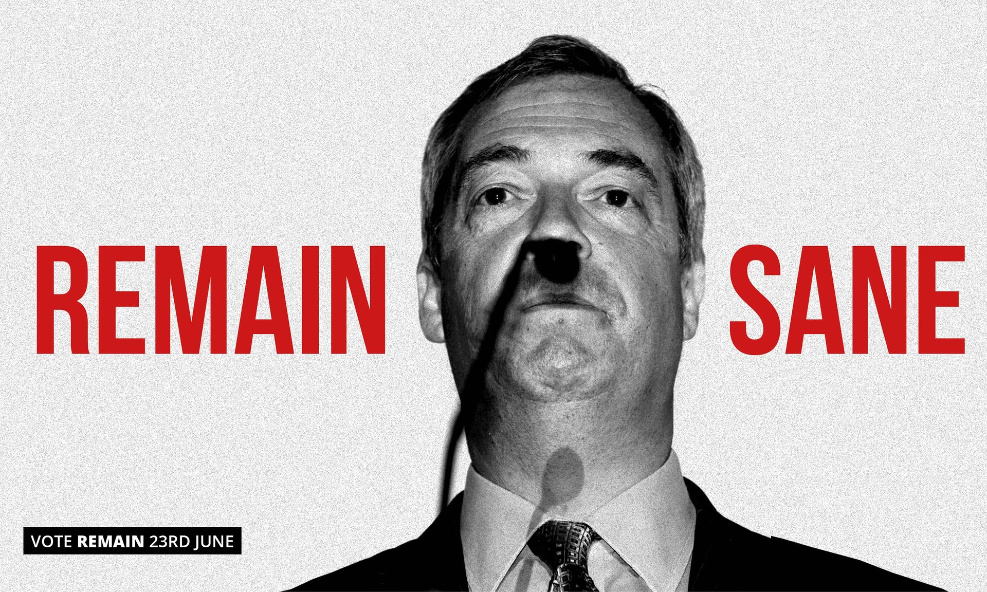 Άλλο δείχνει τον Φάρατζ με το μικρόφωνο να μοιάζει λιγάκι με το μουστάκι του Χίτλερ και να καλεί: «Μένουμε στα λογικά μας».
