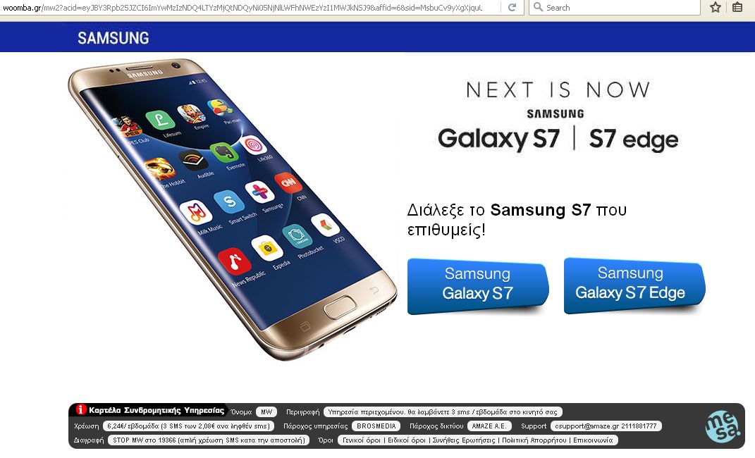 Η απόπειρα φαίνεται ότι έχει αποδειχτεί καθώς ο τίτλος της σελίδας είναι «Διεκδίκησε ένα Samsung S6!». Στις προηγούμενες σελίδες ο τίτλος είναι παραπλανητικός «Samsung Greece»