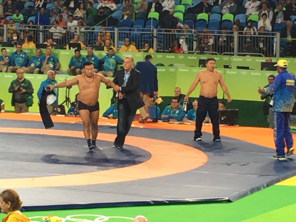 Όλα άρχισαν έξι δευτερόλεπτα πριν το τέλος της αναμέτρησης ανάμεσα στον Μογγόλο Γκαντζορίγκ και τον Ουζμπέκο Ναβρουζόφ, αναμέτρηση που θα έδινε το ένα από τα δύο χάλκινα μετάλλια της κατηγορίας.