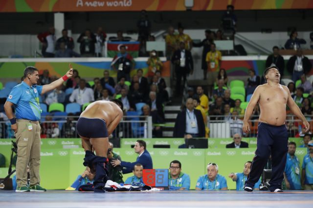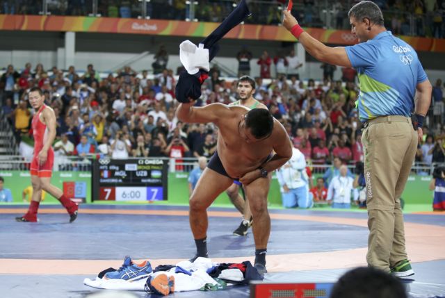 Tραγελαφικές εικόνες με… στριπτίζ και πέταγμα παπουτσιών, σημάδεψαν τον έναν από τους δύο τελικούς της κατηγορίας των 65 κιλών του Ολυμπιακού τουρνουά της ελευθέρας πάλης!