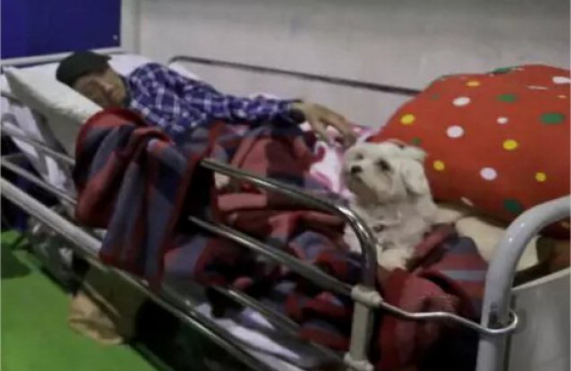 Έχουν μόνο ο ένας τον άλλο. Επέζησαν του ισχυρού σεισμού στο Αματρίτσε. Και έχασαν το σπίτι τους. Τώρα, ο 97χρονος παππούς κοιμάται στην ασφάλεια ενός κλειστού γυμναστηρίου. Ο σκύλος του όμως μένει ξάγρυπνος, σαν να θέλει να είναι έτοιμος να τον προστατεύσει.