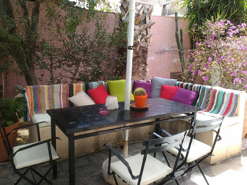 Αφού διασχίσεις το εσωτερικό του σπιτιού και βρεθείς στο πίσω μέρος του κτίσματος παραμονεύει η έκπληξη. Ένας καταπράσινος κήπος με λεμονιές, συκιές και λουλούδια, σε έθνικ πινελιές σε αποζημιώνει.