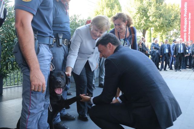 «Χειραψία» με τον Λέο, τον ήρωα σκύλο διασώστη της Ιταλίας, αντάλλαξε η Άνγκελα Μέρκελ στο πλαίσιο της επίσκεψής της στην Ιταλία για τη διακυβερνητική με τον Ματέο Ρέντσι με επίκεντρο τις διμερείς οικονομικές και εμπορικές σχέσεις και τις σημερινές προκλήσεις για την Ευρώπη.