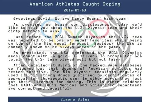 Ρώσοι χάκερ «αποκαλύπτουν» σκάνδαλο ντόπινγκ με Αμερικανούς στο Ρίο