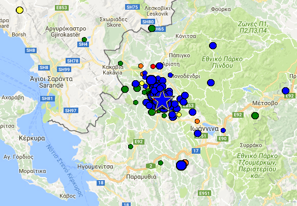O χάρτης του Γευδυναμικού Ινστιτούτου με τη δραστηριότητα των τελευταίων ωρών στην περιοχή της Ηπείρου: