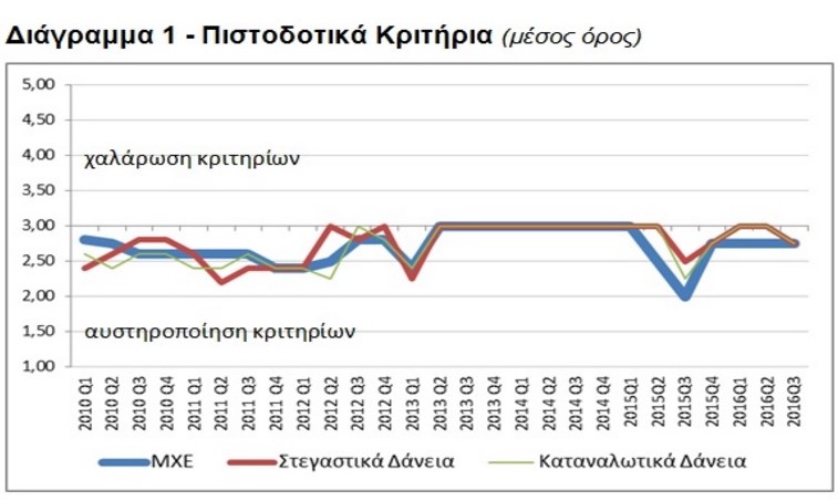 Τα κριτήρια χορήγησης και η ζήτηση δανείων προς νοικοκυριά αναμένεται να παραμείνουν στα ίδια επίπεδα και κατά τη διάρκεια του τετάρτου τριμήνου του 2016.