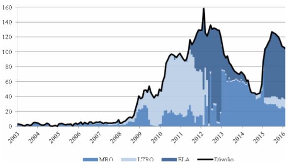 Διάγραμμα 2. Εξέλιξη των υποχρεώσεων ελληνικών τραπεζών έναντι του ευρωσυστήματος (σε δις ευρώ)