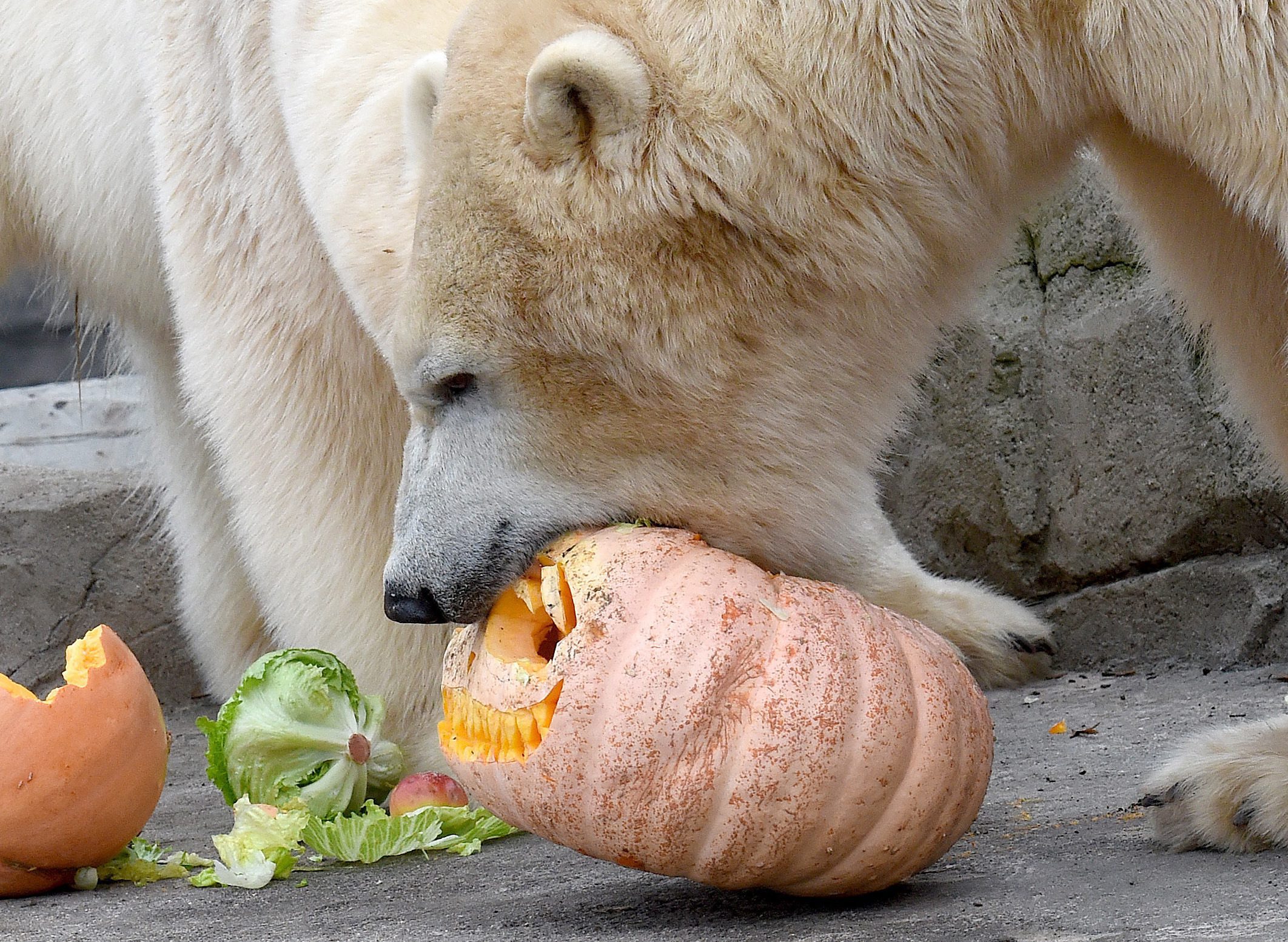 Η κολοκύθα αποτελεί το σήμα κατατεθέν του Halloween, μιας πολύ αμερικανικής υπόθεσης που όμως κερδίζει έδαφος και στην Ευρώπη. Οι υπεύθυνοι ζωολογικού κήπου στο Ανόβερο της Γερμανίας αποφάσισαν να τιμήσουν το έθιμο, προσφέροντας μια κολοκύθα στους γεμάτους περιέργεια «ενοίκους» του κήπου.