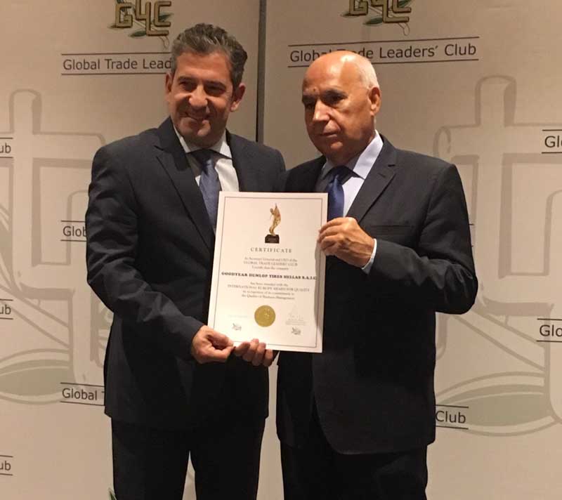 Η Goodyear Dunlop Ελλάς επελέγη από τα 7.500 μέλη του Global Trade Leaders για το διεθνές βραβείο ποιότητας το οποίο απονέμεται σε εταιρείες που διακρίνονται για την επιχειρηματικής τους φιλοσοφία.