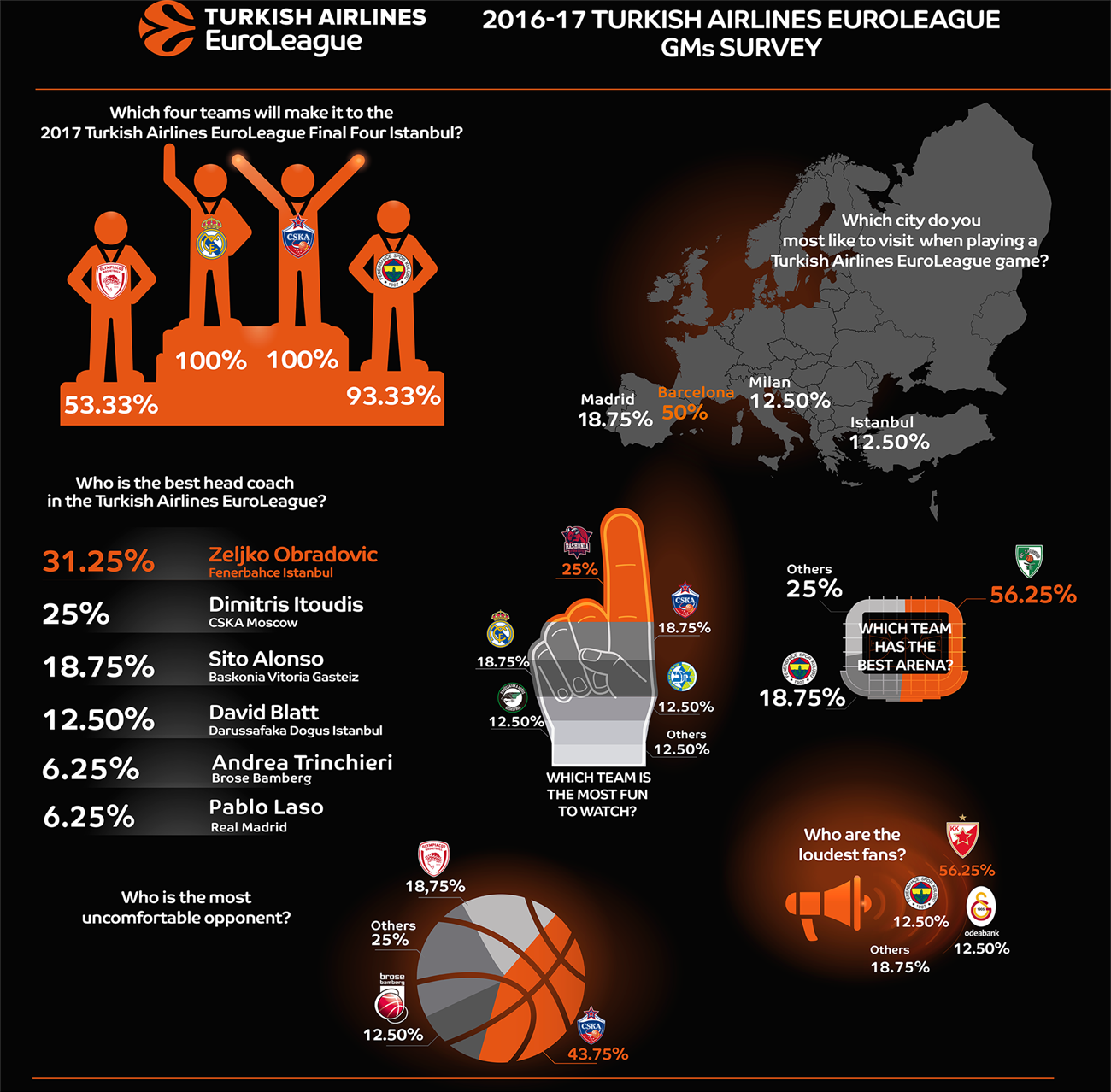 Στο final 4 της Euroleague, το οποίο θα διεξαχθεί στην Κωνσταντινούπολη, «βλέπουν» τον Ολυμπιακό οι GM των 16 ομάδων που συμμετέχουν φέτος στη διοργάνωση.