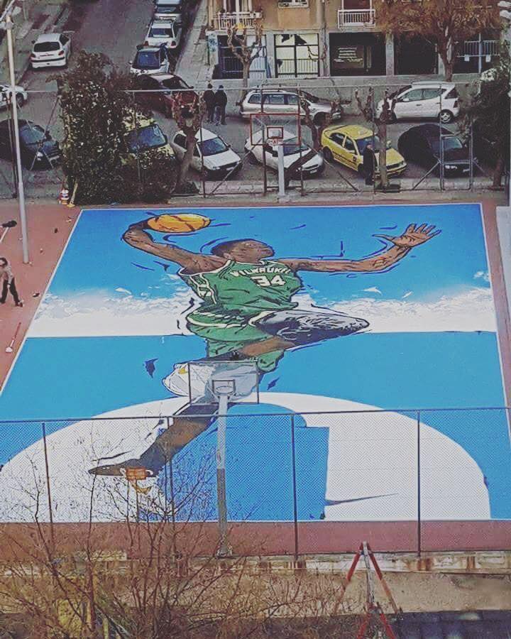 Ο Αντετοκούνμπο έγινε γκράφιτι στο γήπεδο του Τρίτωνα