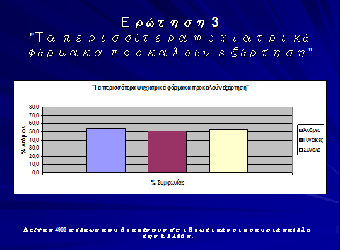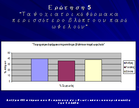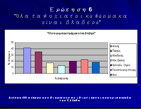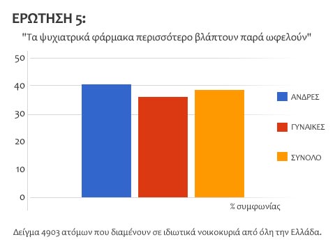 Στα ίδια ποσοστά περίπου στο 40% είναι και αυτοί που έχουν την ακραία άποψη ότι όλα τα ψυχιατρικά φάρμακα είναι βλαβερά.
