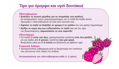 Και μην ξεχνάτε! Η σωστή, καθημερινή στοματική υγιεινή με οδοντόκρεμα και στοματικό διάλυμα που περιέχουν φθόριο, μια δίαιτα χαμηλή σε σάκχαρα και τακτικές επισκέψεις στον Οδοντίατρο δύο φορές τον χρόνο προλαμβάνουν την τερηδόνα και εξασφαλίζουν γερά δόντια. Η καλύτερη λοιπόν στοματική υγιεινή για τα πιο όμορφα δοντάκια!